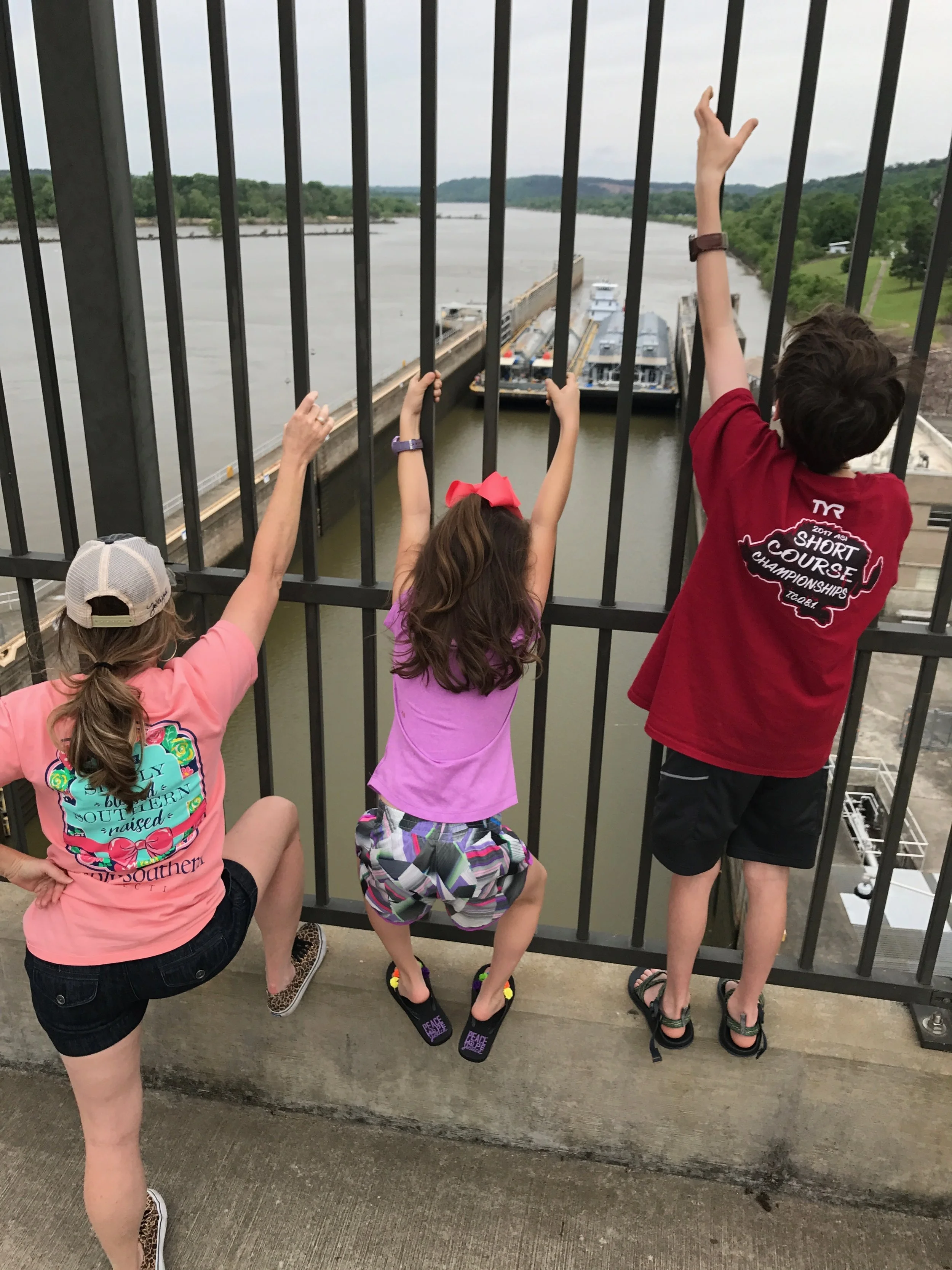 For Easter this year we went to Little Rock to spend time with the Johnsons. For Christmas, Jenna had bought Ann and Campbell tickets to Riverdance and this was the weekend of the show. We thought we would parlay it into an opportunity to visit our old pastor in his new digs in downtown Little Rock for Easter Sunday. We were able to cram a lot into a weekend. Jenna and I went on a bike ride with a date night, the kids got some fishing in, the ballet, I was able to take Noah to Pinnacle Mountain and climb the hard side (I swear it wasn't that hard 25 years ago) Easter eggs, and finally the kids got to see the Big Dam Bridge after a year or two giggling at it's name. Solid weekend.