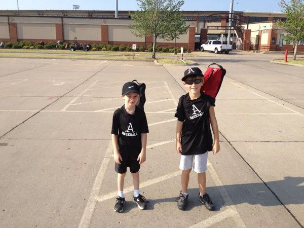 The boys aren't as bushy tailed this morning after an 8 o'clock game last night but they are managing. After a couple of days running around a full sized diamond Noah said "my legs hurt and they don't want to go straight."